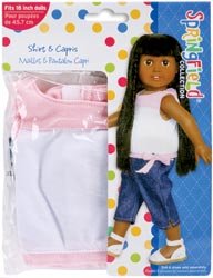 Product Description : FIBRE CRAFT-Springfield Collection: For 18 inch Dolls. Fibre Craft has everything you need to round out the wardrobes of your Springfield Dolls. This package contains one pink and white sleeveless shirt and denim capri pants. Imported.