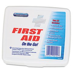 Product Description : Compact mini first aid kit. Contains basic first aid items to treat the most common incidents and accidents. Perfect for travel. Fits in purse, gym bag, glove compartment, golf bag or desk drawer. Number of Pieces: 13; Contains: Adhesive Bandages;Gauze.