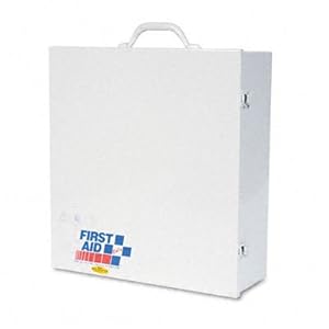 Product Description : Color-coded packaging schematic helps for easy organization and reordering. Comes in a metal cabinet with three shelves and 12-pocket liner. Holds 1,041 pieces including burns, major bleeding, discomforts, eye injuries, minor cuts and abrasions. Case has two latches and carry handle. System Capacity: 100 Person System; Number of Pieces: 1041; Contains: Alcohol Cleansing Pads;Antacid Tablets;Antibiotic Ointment;Antiseptic Spray;Aspirin Tablets;Bandages;Burn Spray;Cold Compress;Cough Drops;Elastic Bandage Wrap;Eye Wash;First Aid Guide;First Aid Tape;Gauze Compress;Gauze Dressing Pads;Non-Aspirin Tablets;Scissors;Tweezers;Tongue Depressors;Triangular Sling;Vinyl Exam Gloves;Vinyl Liner.