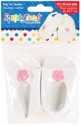 Product Description : FIBRE CRAFT-Springfield Collection: For 18 inch Dolls. Fibre Craft has everything you need to round out the wardrobes of your Springfield Dolls. This package contains one pair of white peep toe sandals. Imported.